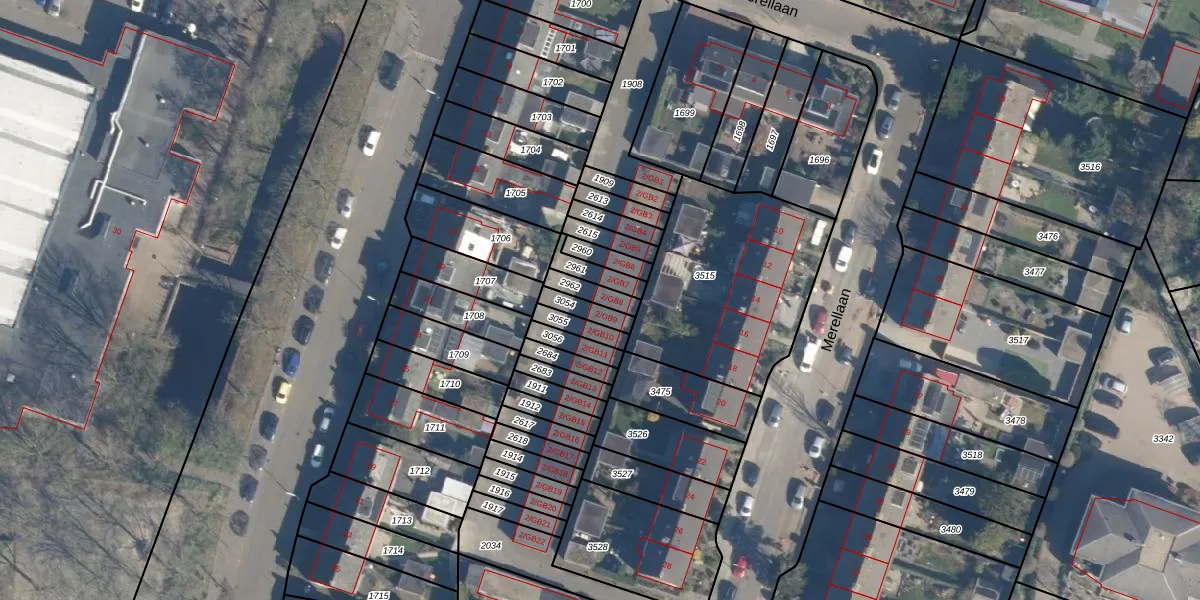 Het perceel waarop Merellaan 2-GB8 staat heeft een oppervlakte van 50 m². Dit is een klein perceel. De perceeloppervlakte wordt geregistreerd door het Kadaster. Gedetailleerde informatie over de maten van dit perceel kunt u vinden in het rapport Kadastrale kaart met maatvoering van Merellaan 2-GB8.