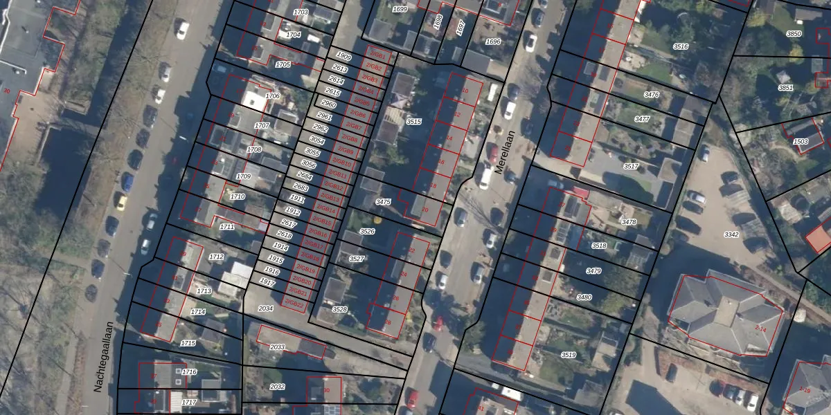 Het perceel waarop Merellaan 20 staat heeft een oppervlakte van 194 m². Dit is een middelgroot perceel. De perceeloppervlakte wordt geregistreerd door het Kadaster. Gedetailleerde informatie over de maten van dit perceel kunt u vinden in het rapport Kadastrale kaart met maatvoering van Merellaan 20.