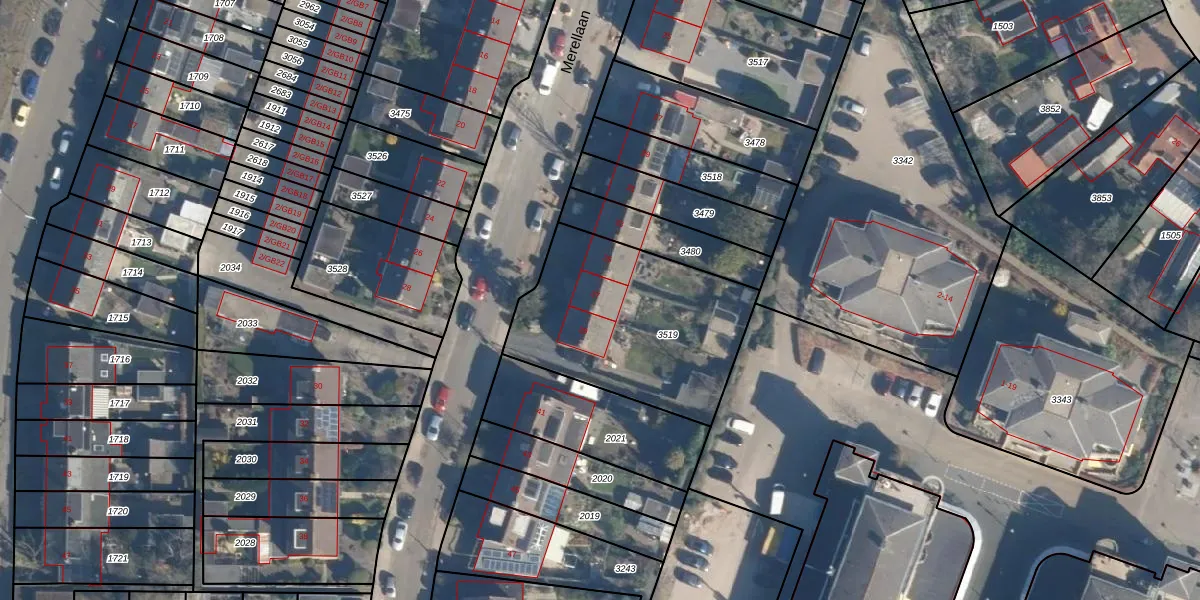 Het perceel waarop Merellaan 37 staat heeft een oppervlakte van 858 m². Dit is een groot perceel. De perceeloppervlakte wordt geregistreerd door het Kadaster. Gedetailleerde informatie over de maten van dit perceel kunt u vinden in het rapport Kadastrale kaart met maatvoering van Merellaan 37.