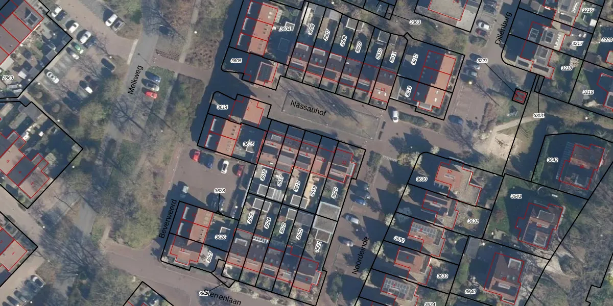 Gebruik de zoekbalk of klik op een perceel voor informatie over de adressen binnen dit perceel.