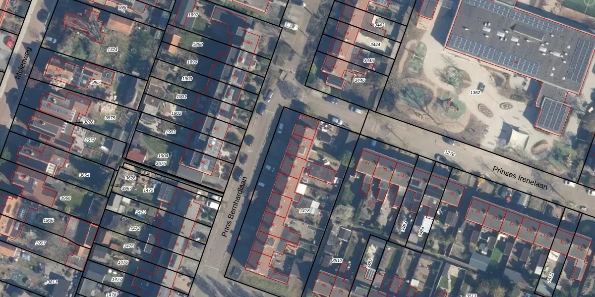 Het perceel waarop Prins Bernhardlaan 47 staat heeft een oppervlakte van 1632 m². Dit is een zeer groot perceel. De perceeloppervlakte wordt geregistreerd door het Kadaster. Gedetailleerde informatie over de maten van dit perceel kunt u vinden in het rapport Kadastrale kaart met maatvoering van Prins Bernhardlaan 47.