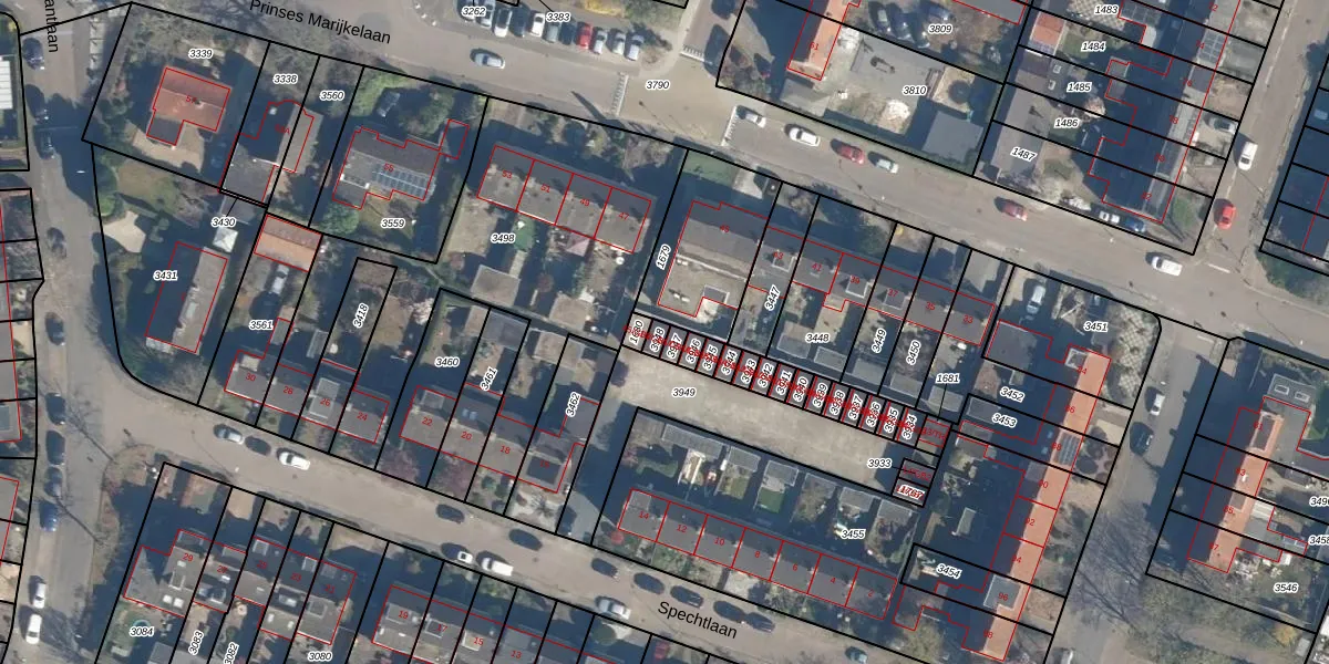 Het perceel waarop Spechtlaan 14-GB17 staat heeft een oppervlakte van 16 m². Dit is een klein perceel. De perceeloppervlakte wordt geregistreerd door het Kadaster. Gedetailleerde informatie over de maten van dit perceel kunt u vinden in het rapport Kadastrale kaart met maatvoering van Spechtlaan 14-GB17.