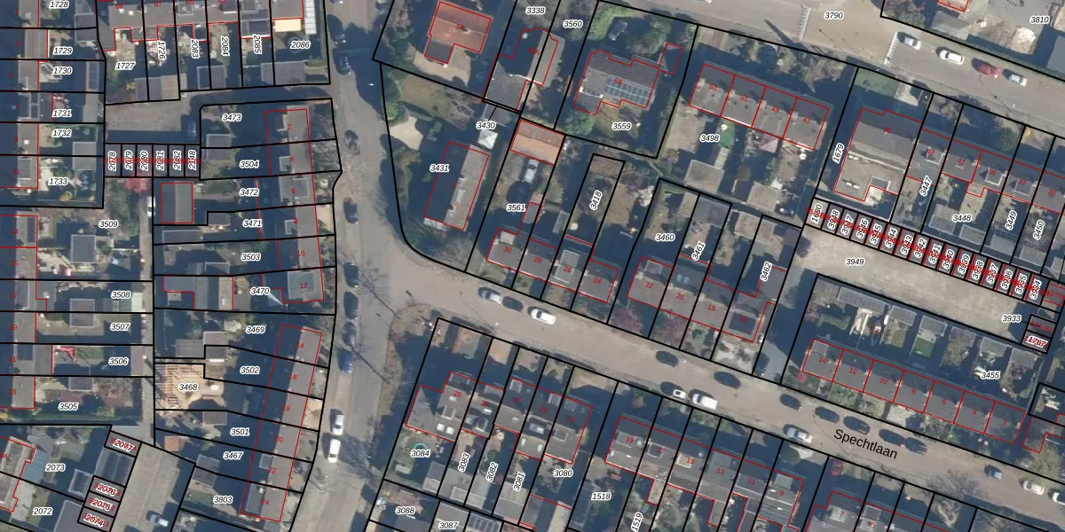 Het perceel waarop Spechtlaan 28 staat heeft een oppervlakte van 1555 m². Dit is een zeer groot perceel. De perceeloppervlakte wordt geregistreerd door het Kadaster. Gedetailleerde informatie over de maten van dit perceel kunt u vinden in het rapport Kadastrale kaart met maatvoering van Spechtlaan 28.