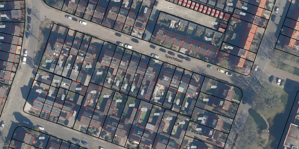 Het perceel waarop Spechtlaan 9 staat heeft een oppervlakte van 265 m². Dit is een middelgroot perceel. De perceeloppervlakte wordt geregistreerd door het Kadaster. Gedetailleerde informatie over de maten van dit perceel kunt u vinden in het rapport Kadastrale kaart met maatvoering van Spechtlaan 9.