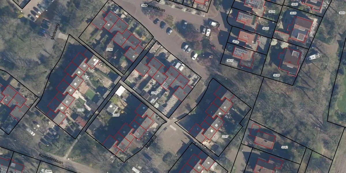 Sterrenlaan 22 is gelegen op kadastraal perceel MTD02B2245. Deze kadastrale aanduiding is uniek en wordt gebruikt door het Kadaster om eigendomsrechten en andere zakelijke rechten vast te leggen. Het perceel maakt onderdeel uit van de kadastrale gemeente Maartensdijk.