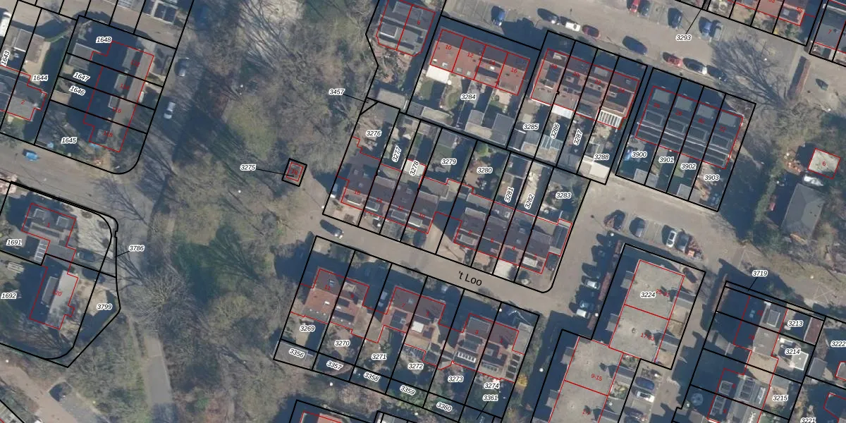 Gebruik de zoekbalk of klik op een perceel voor informatie over de adressen binnen dit perceel.