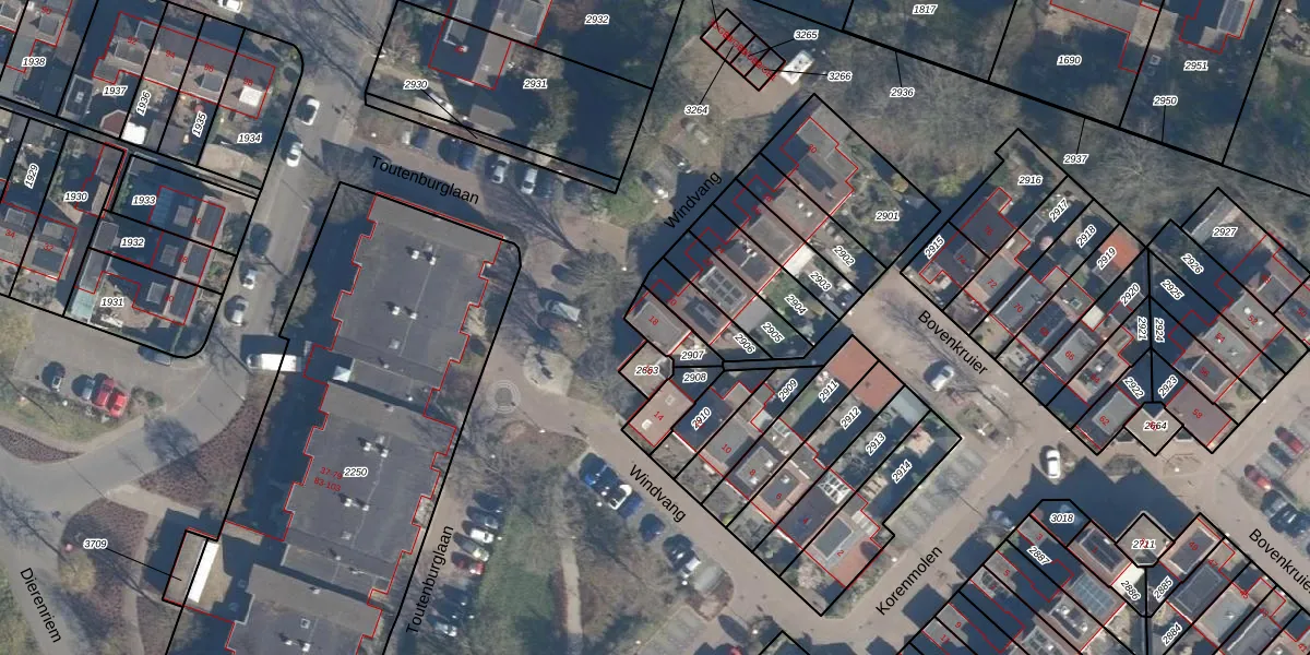 Het perceel waarop Windvang 18 staat heeft een oppervlakte van 82 m². Dit is een klein perceel. De perceeloppervlakte wordt geregistreerd door het Kadaster. Gedetailleerde informatie over de maten van dit perceel kunt u vinden in het rapport Kadastrale kaart met maatvoering van Windvang 18.