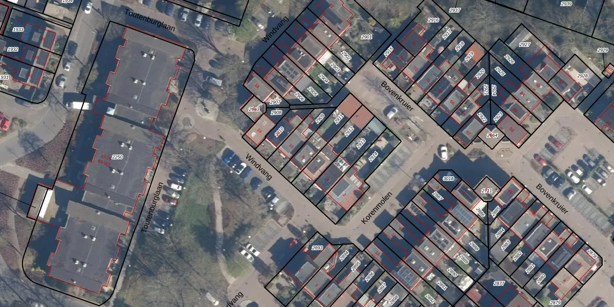 Het perceel waarop Windvang 8 staat heeft een oppervlakte van 187 m². Dit is een middelgroot perceel. De perceeloppervlakte wordt geregistreerd door het Kadaster. Gedetailleerde informatie over de maten van dit perceel kunt u vinden in het rapport Kadastrale kaart met maatvoering van Windvang 8.