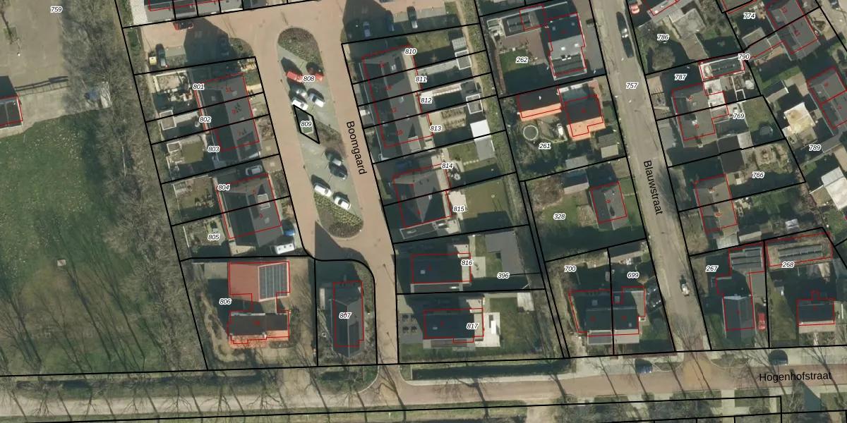 Het perceel waarop Boomgaard 6 staat heeft een oppervlakte van 357 m². Dit is een groot perceel. De perceeloppervlakte wordt geregistreerd door het Kadaster. Gedetailleerde informatie over de maten van dit perceel kunt u vinden in het rapport Kadastrale kaart met maatvoering van Boomgaard 6.