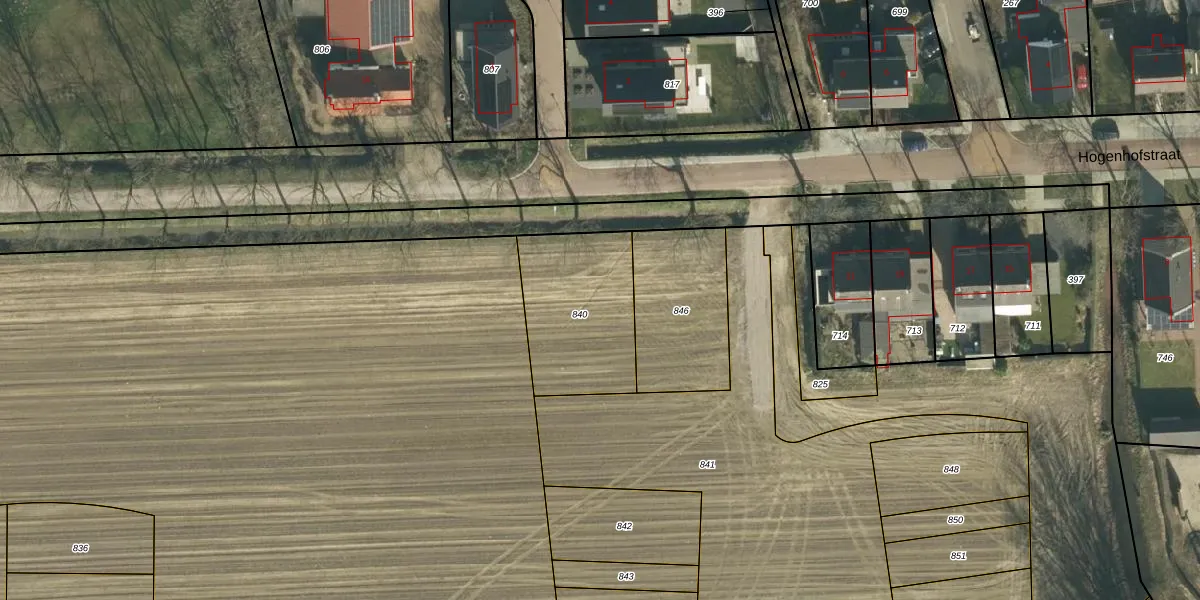 Het perceel waarop Hogenhofstraat 21-a staat heeft een oppervlakte van 491 m². Dit is een groot perceel. De perceeloppervlakte wordt geregistreerd door het Kadaster. Gedetailleerde informatie over de maten van dit perceel kunt u vinden in het rapport Kadastrale kaart met maatvoering van Hogenhofstraat 21-a.