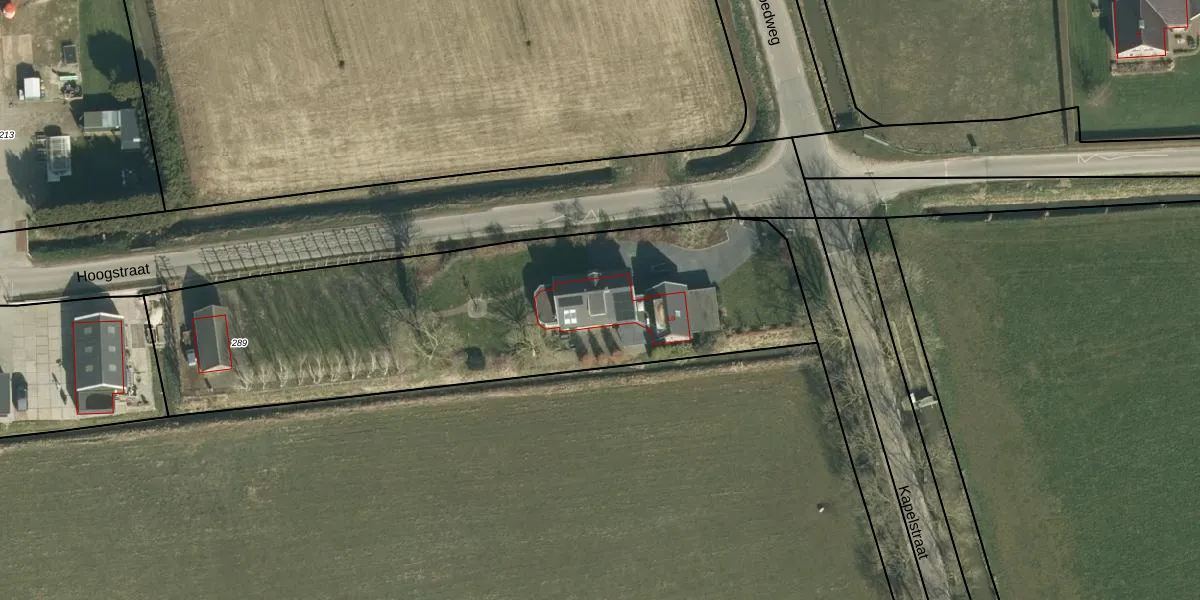 Hoogstraat 1 is gelegen op kadastraal perceel APT00R289. Deze kadastrale aanduiding is uniek en wordt gebruikt door het Kadaster om eigendomsrechten en andere zakelijke rechten vast te leggen. Het perceel maakt onderdeel uit van de kadastrale gemeente Appeltern.