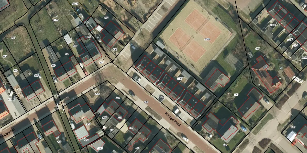 Het perceel waarop Kampstraat 27 staat heeft een oppervlakte van 1150 m². Dit is een zeer groot perceel. De perceeloppervlakte wordt geregistreerd door het Kadaster. Gedetailleerde informatie over de maten van dit perceel kunt u vinden in het rapport Kadastrale kaart met maatvoering van Kampstraat 27.