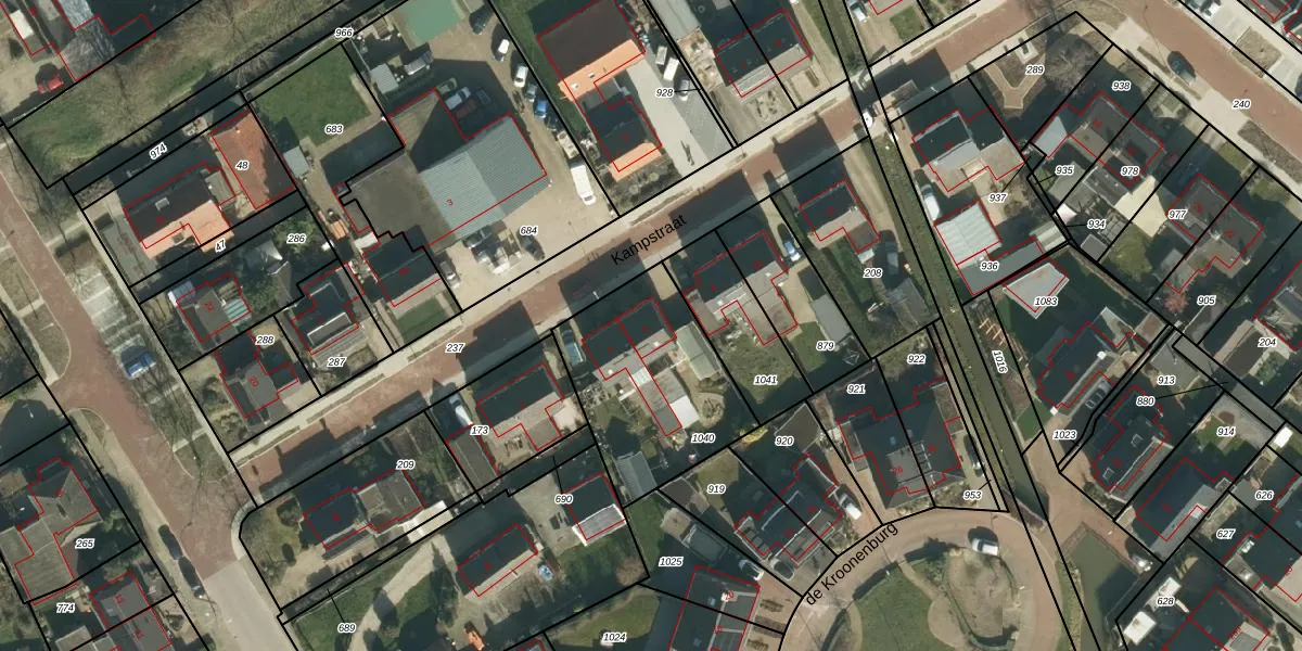 Het perceel waarop Kampstraat 6 staat heeft een oppervlakte van 655 m². Dit is een groot perceel. De perceeloppervlakte wordt geregistreerd door het Kadaster. Gedetailleerde informatie over de maten van dit perceel kunt u vinden in het rapport Kadastrale kaart met maatvoering van Kampstraat 6.