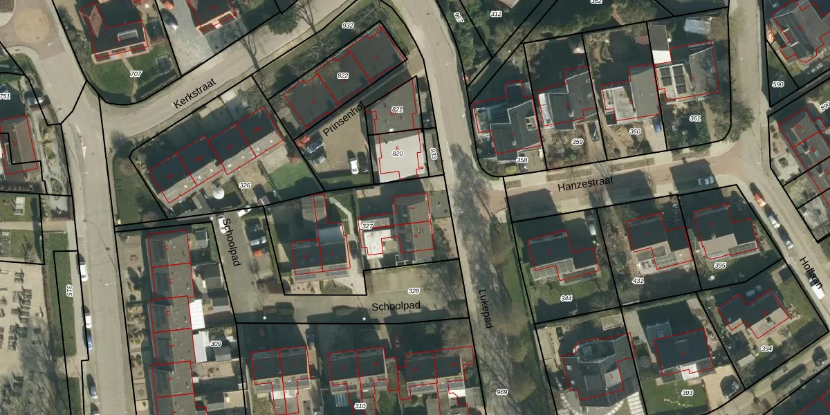 Het perceel waarop Lukepad 2 staat heeft een oppervlakte van 976 m². Dit is een groot perceel. De perceeloppervlakte wordt geregistreerd door het Kadaster. Gedetailleerde informatie over de maten van dit perceel kunt u vinden in het rapport Kadastrale kaart met maatvoering van Lukepad 2.
