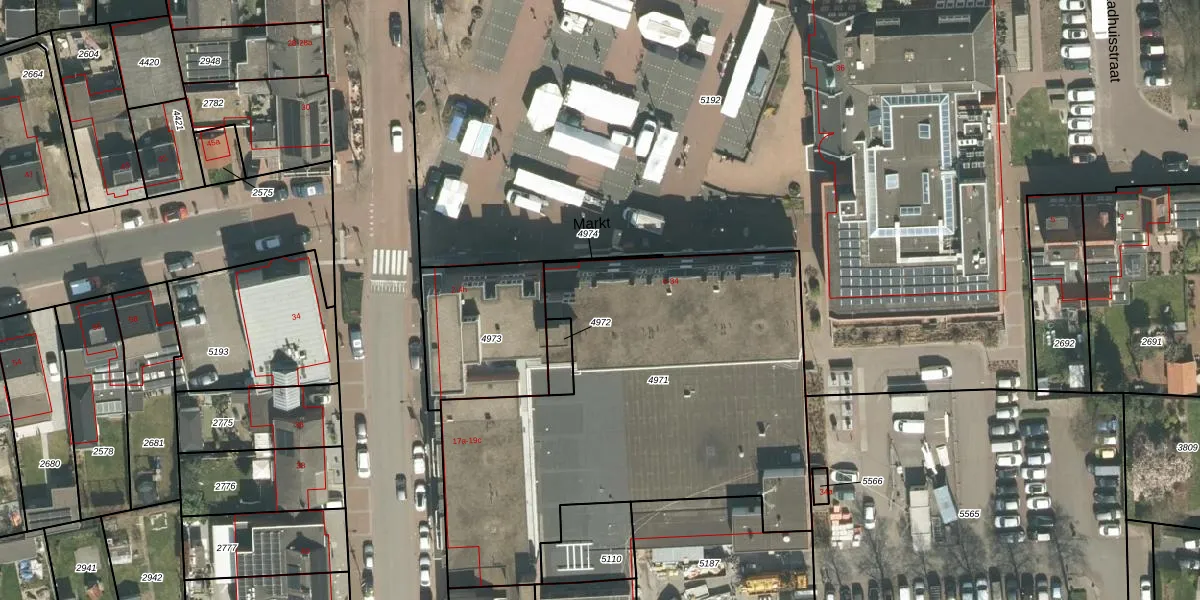 Het perceel waarop Markt 26 staat heeft een oppervlakte van 2290 m². Dit is een zeer groot perceel. De perceeloppervlakte wordt geregistreerd door het Kadaster. Gedetailleerde informatie over de maten van dit perceel kunt u vinden in het rapport Kadastrale kaart met maatvoering van Markt 26.