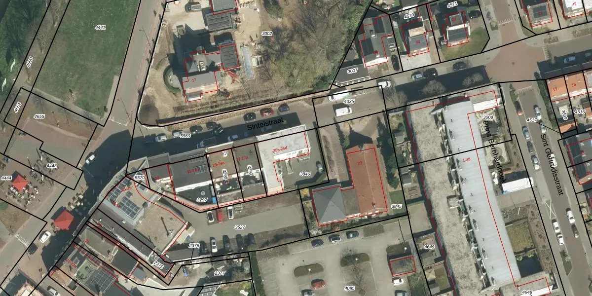 Sintelstraat 25-c is gelegen op kadastraal perceel MBT00E3846. Deze kadastrale aanduiding is uniek en wordt gebruikt door het Kadaster om eigendomsrechten en andere zakelijke rechten vast te leggen. Het perceel maakt onderdeel uit van de kadastrale gemeente Maasbracht.
