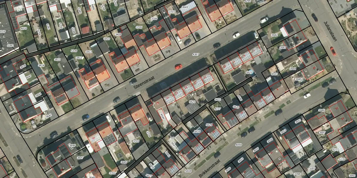 Het perceel waarop Steenstraat 21 staat heeft een oppervlakte van 719 m². Dit is een groot perceel. De perceeloppervlakte wordt geregistreerd door het Kadaster. Gedetailleerde informatie over de maten van dit perceel kunt u vinden in het rapport Kadastrale kaart met maatvoering van Steenstraat 21.