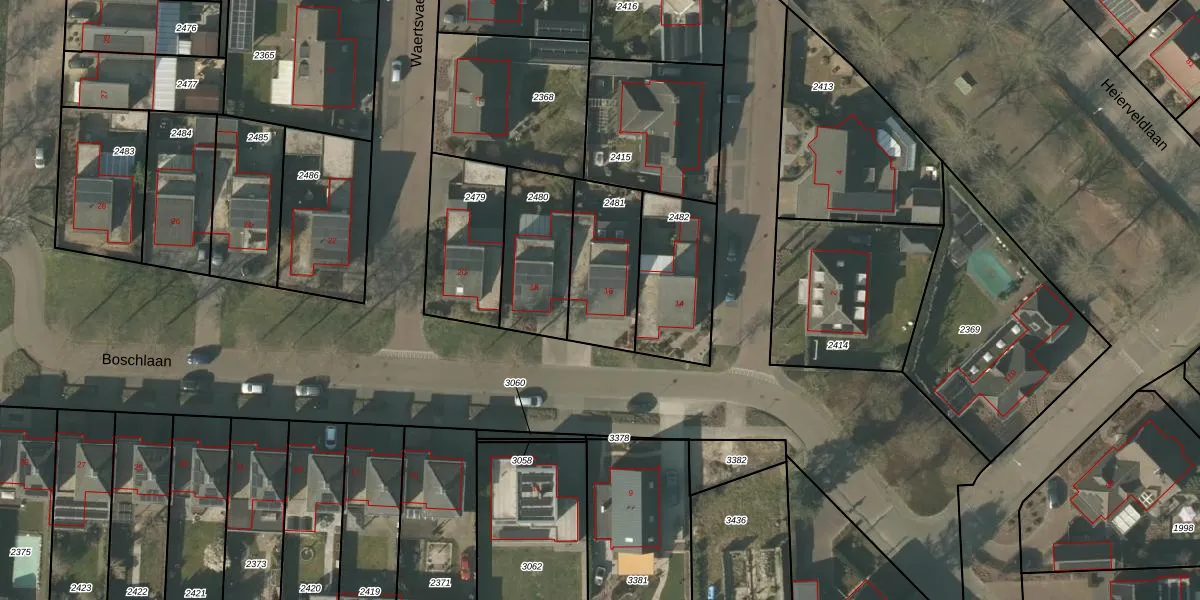 Boschlaan 16 is gelegen op kadastraal perceel MBE00K2481. Deze kadastrale aanduiding is uniek en wordt gebruikt door het Kadaster om eigendomsrechten en andere zakelijke rechten vast te leggen. Het perceel maakt onderdeel uit van de kadastrale gemeente Maasbree.