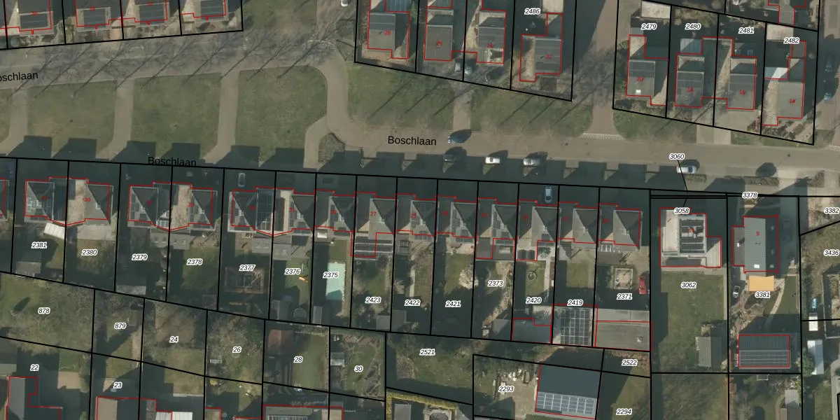 Gebruik de zoekbalk of klik op een perceel voor informatie over de adressen binnen dit perceel.