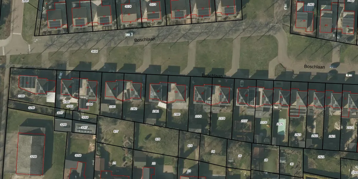 Boschlaan 39 is gelegen op kadastraal perceel MBE00K2380. Deze kadastrale aanduiding is uniek en wordt gebruikt door het Kadaster om eigendomsrechten en andere zakelijke rechten vast te leggen. Het perceel maakt onderdeel uit van de kadastrale gemeente Maasbree.