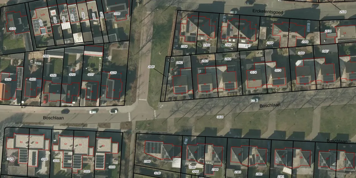 Gebruik de zoekbalk of klik op een perceel voor informatie over de adressen binnen dit perceel.