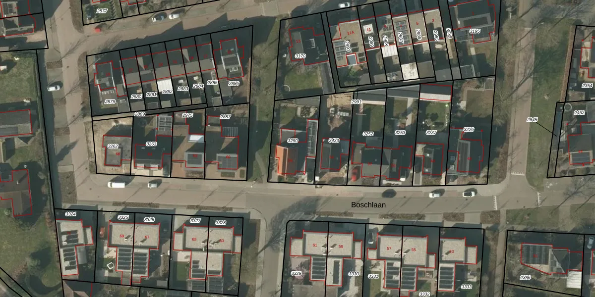 Boschlaan 56 is gelegen op kadastraal perceel MBE00K3250. Deze kadastrale aanduiding is uniek en wordt gebruikt door het Kadaster om eigendomsrechten en andere zakelijke rechten vast te leggen. Het perceel maakt onderdeel uit van de kadastrale gemeente Maasbree.