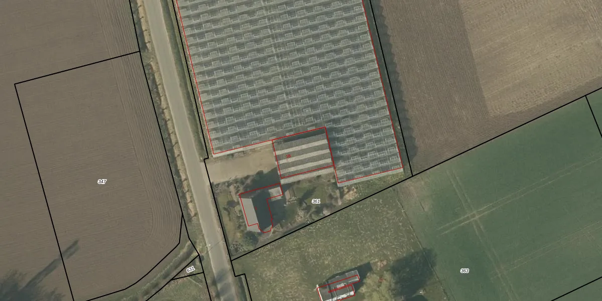 Het adres is gelegen op perceel 361 in de sectie T en de kadastrale gemeente Maasbree. De kadastrale aanduiding is aldus MBE00-T-361. Het perceel is met 7504 m² relatief groot. Het gemiddelde ligt in de kadastrale gemeente Maasbree op 4462,17 m². Het grootste perceel in de kadastrale gemeente is 26,2 ha. Het kleinste perceel heeft een oppervlakte van 0 m². Op het perceel liggen in totaal 2 adressen. De huidige grenzen van het perceel zijn digitaal in de Basisregistratie Kadaster (BRK) geregistreerd op 13-03-2008.