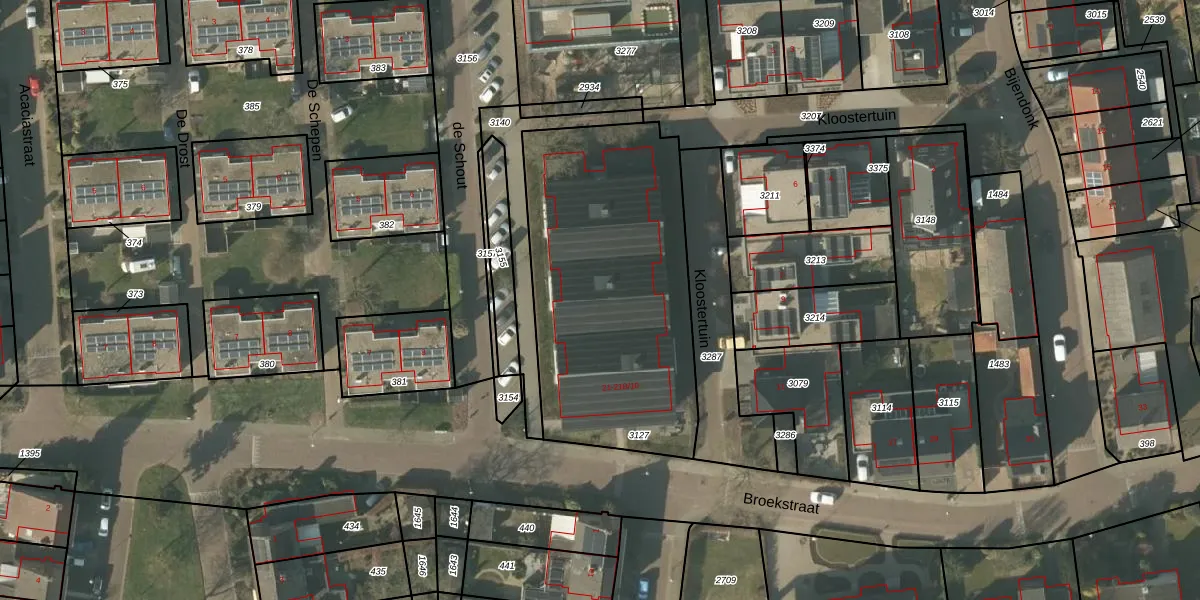 Het perceel waarop Broekstraat 21-B-3 staat heeft een oppervlakte van 1400 m². Dit is een zeer groot perceel. De perceeloppervlakte wordt geregistreerd door het Kadaster. Gedetailleerde informatie over de maten van dit perceel kunt u vinden in het rapport Kadastrale kaart met maatvoering van Broekstraat 21-B-3.