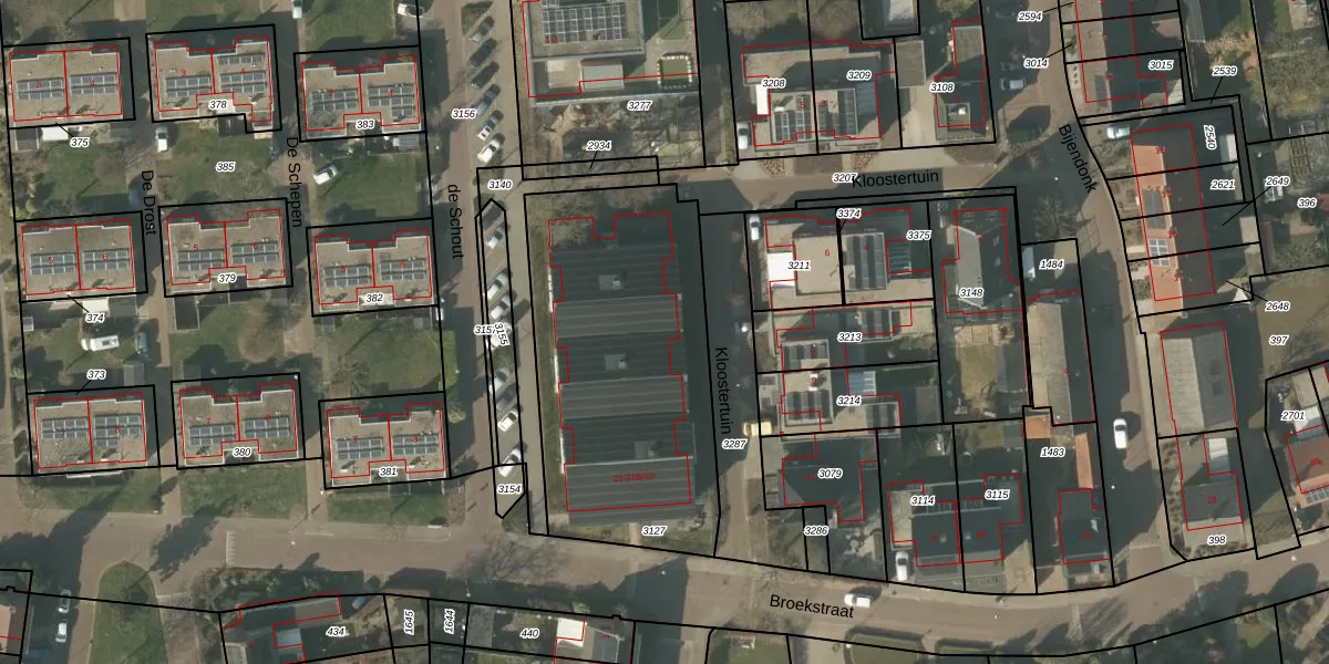 Het perceel waarop Broekstraat 21-B-9 staat heeft een oppervlakte van 1400 m². Dit is een zeer groot perceel. De perceeloppervlakte wordt geregistreerd door het Kadaster. Gedetailleerde informatie over de maten van dit perceel kunt u vinden in het rapport Kadastrale kaart met maatvoering van Broekstraat 21-B-9.