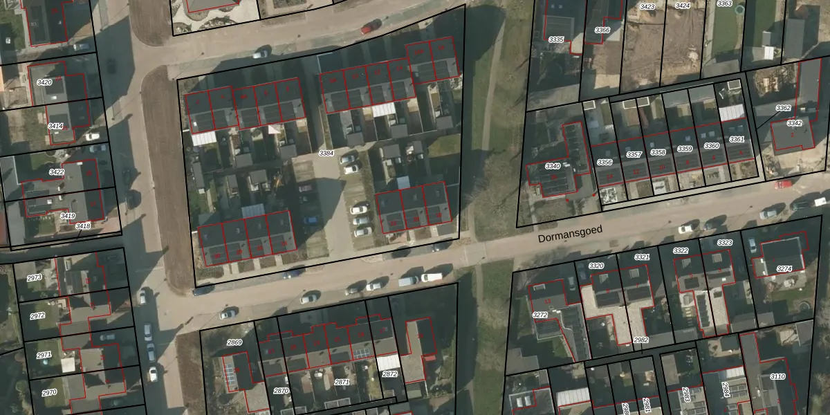 Het perceel waarop Dormansgoed 20 staat heeft een oppervlakte van 3455 m². Dit is een zeer groot perceel. De perceeloppervlakte wordt geregistreerd door het Kadaster. Gedetailleerde informatie over de maten van dit perceel kunt u vinden in het rapport Kadastrale kaart met maatvoering van Dormansgoed 20.