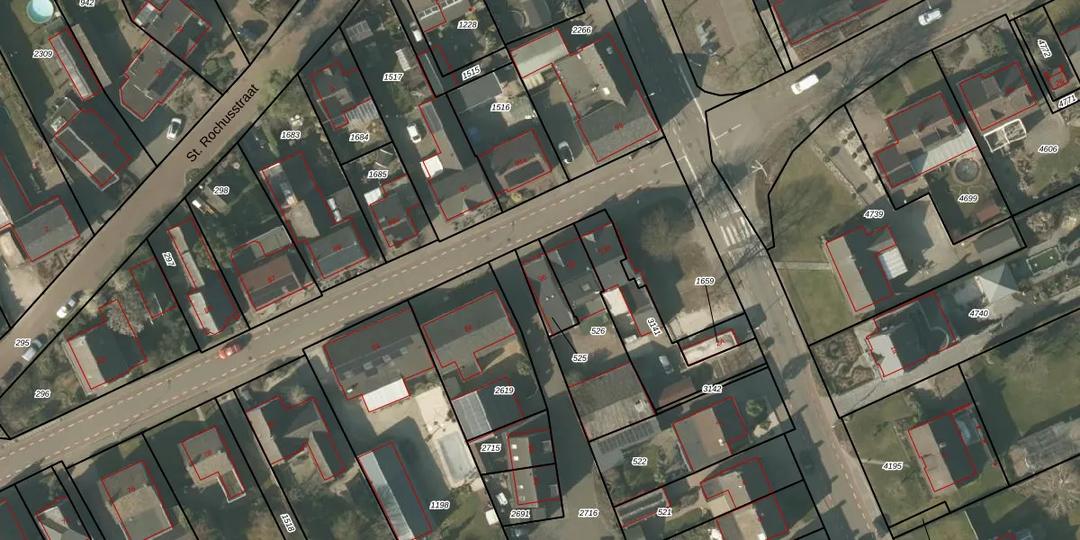 Gebruik de zoekbalk of klik op een perceel voor informatie over de adressen binnen dit perceel.