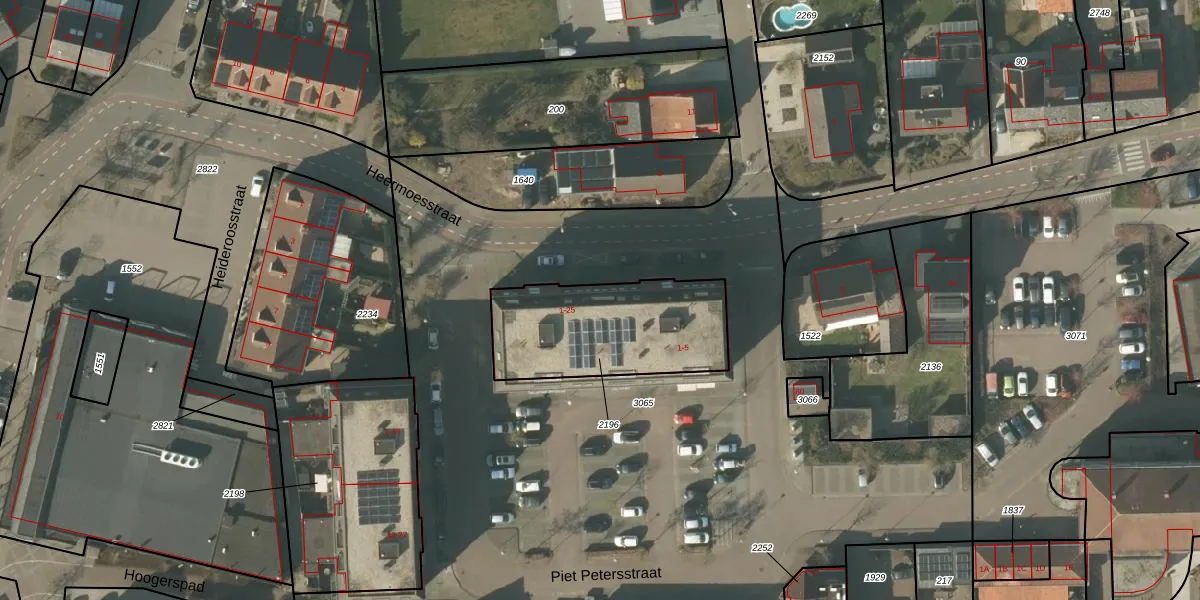 Heermoesstraat 15 is gelegen op kadastraal perceel MBE00K2196. Deze kadastrale aanduiding is uniek en wordt gebruikt door het Kadaster om eigendomsrechten en andere zakelijke rechten vast te leggen. Het perceel maakt onderdeel uit van de kadastrale gemeente Maasbree.
