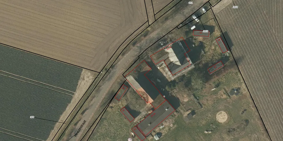 Het perceel waarop Heezestraat 2 staat heeft een oppervlakte van 1,4 ha. Dit is een zeer groot perceel. De perceeloppervlakte wordt geregistreerd door het Kadaster. Gedetailleerde informatie over de maten van dit perceel kunt u vinden in het rapport Kadastrale kaart met maatvoering van Heezestraat 2.