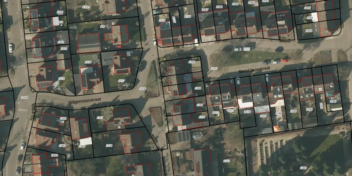 Gebruik de zoekbalk of klik op een perceel voor informatie over de adressen binnen dit perceel.