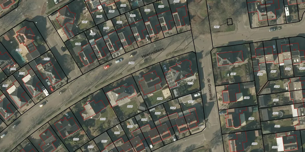 Gebruik de zoekbalk of klik op een perceel voor informatie over de adressen binnen dit perceel.