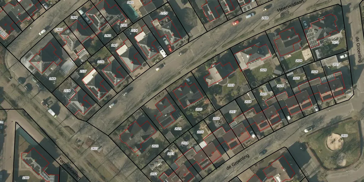 Gebruik de zoekbalk of klik op een perceel voor informatie over de adressen binnen dit perceel.