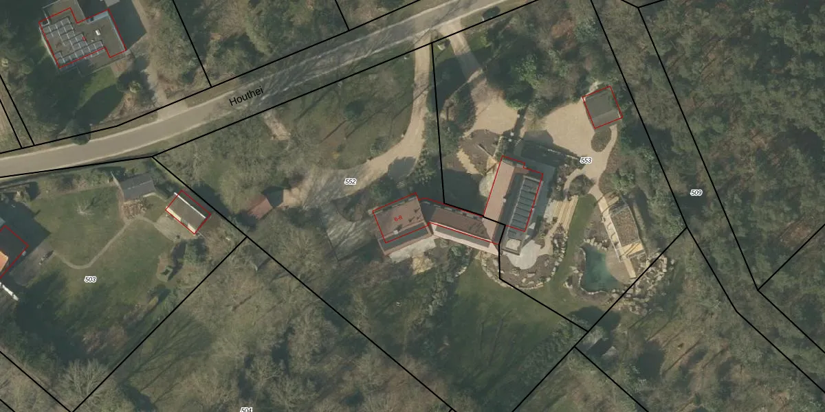 Het perceel waarop Houthei 6 staat heeft een oppervlakte van 4220 m². Dit is een zeer groot perceel. De perceeloppervlakte wordt geregistreerd door het Kadaster. Gedetailleerde informatie over de maten van dit perceel kunt u vinden in het rapport Kadastrale kaart met maatvoering van Houthei 6.