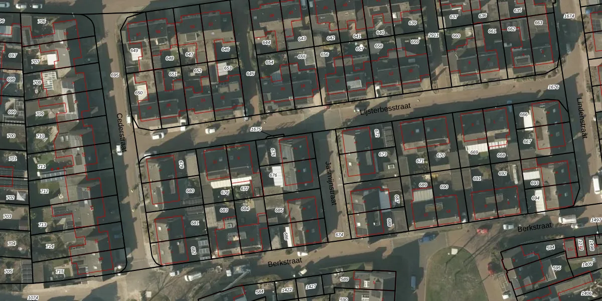 Gebruik de zoekbalk of klik op een perceel voor informatie over de adressen binnen dit perceel.