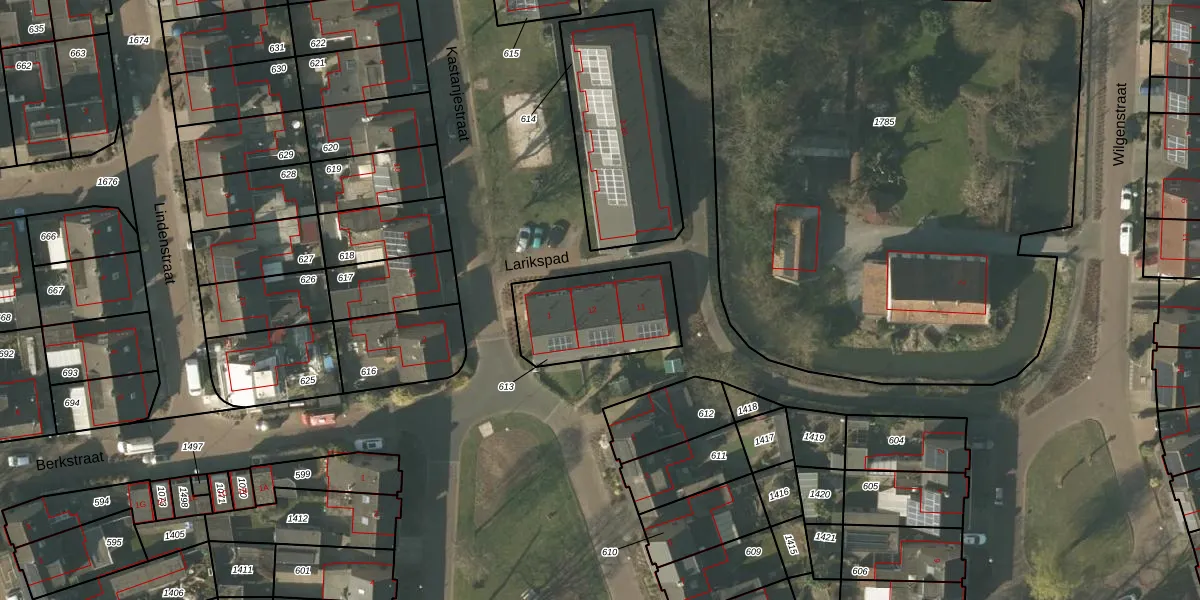 Het perceel waarop Larikspad 12 staat heeft een oppervlakte van 380 m². Dit is een groot perceel. De perceeloppervlakte wordt geregistreerd door het Kadaster. Gedetailleerde informatie over de maten van dit perceel kunt u vinden in het rapport Kadastrale kaart met maatvoering van Larikspad 12.