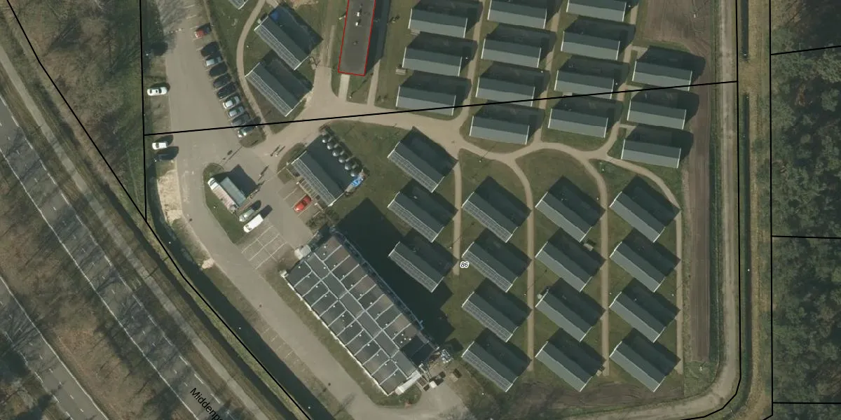 Het perceel waarop Middenpeelweg 4-B-66 staat heeft een oppervlakte van 1,0 ha. Dit is een zeer groot perceel. De perceeloppervlakte wordt geregistreerd door het Kadaster. Gedetailleerde informatie over de maten van dit perceel kunt u vinden in het rapport Kadastrale kaart met maatvoering van Middenpeelweg 4-B-66.