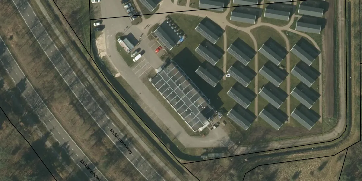 Het perceel waarop Middenpeelweg 4-A staat heeft een oppervlakte van 1,0 ha. Dit is een zeer groot perceel. De perceeloppervlakte wordt geregistreerd door het Kadaster. Gedetailleerde informatie over de maten van dit perceel kunt u vinden in het rapport Kadastrale kaart met maatvoering van Middenpeelweg 4-A.