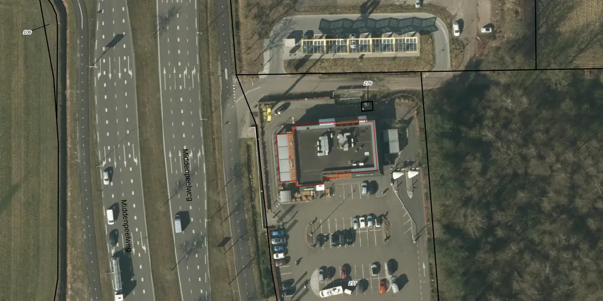 Het perceel waarop Middenpeelweg 6 staat heeft een oppervlakte van 5824 m². Dit is een zeer groot perceel. De perceeloppervlakte wordt geregistreerd door het Kadaster. Gedetailleerde informatie over de maten van dit perceel kunt u vinden in het rapport Kadastrale kaart met maatvoering van Middenpeelweg 6.