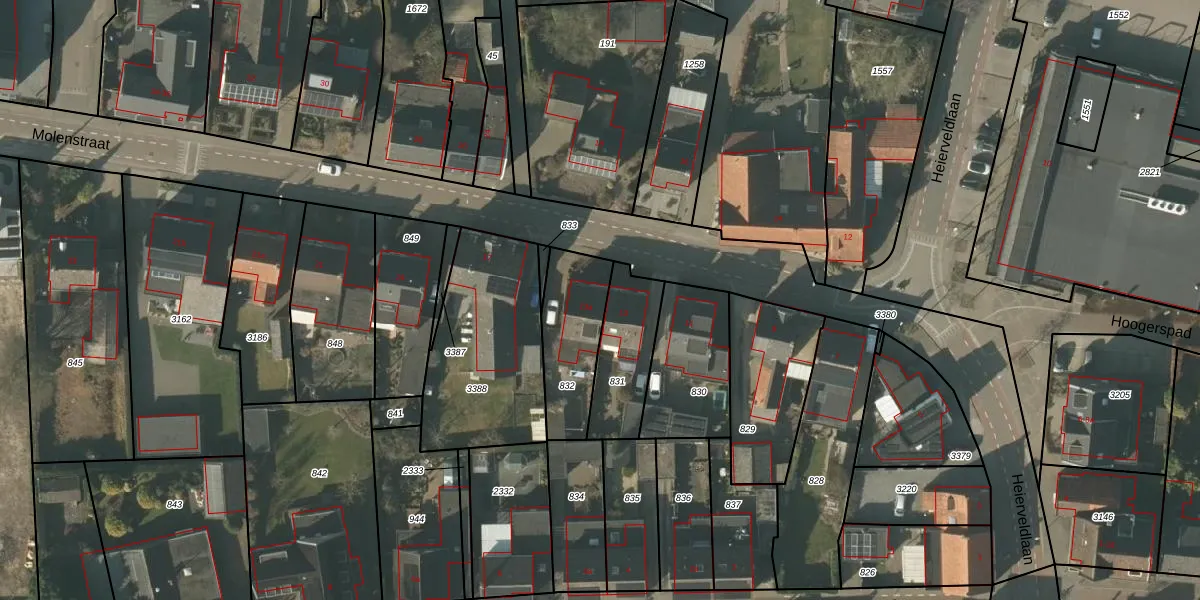Gebruik de zoekbalk of klik op een perceel voor informatie over de adressen binnen dit perceel.