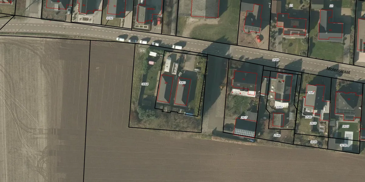 Molenstraat 53 is gelegen op kadastraal perceel MBE00K3063. Deze kadastrale aanduiding is uniek en wordt gebruikt door het Kadaster om eigendomsrechten en andere zakelijke rechten vast te leggen. Het perceel maakt onderdeel uit van de kadastrale gemeente Maasbree.