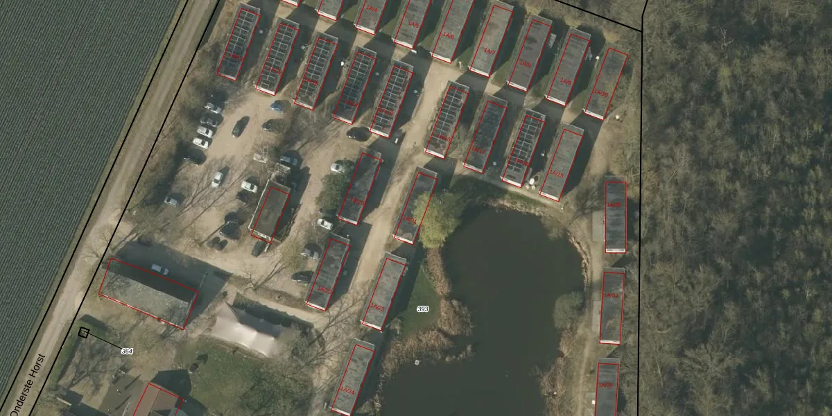 Het perceel waarop Onderste Horst 1-A-21 staat heeft een oppervlakte van 2,1 ha. Dit is een zeer groot perceel. De perceeloppervlakte wordt geregistreerd door het Kadaster. Gedetailleerde informatie over de maten van dit perceel kunt u vinden in het rapport Kadastrale kaart met maatvoering van Onderste Horst 1-A-21.