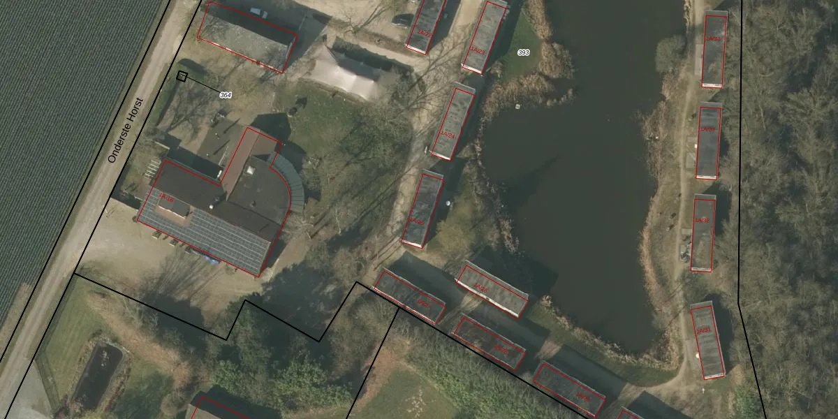 Het perceel waarop Onderste Horst 1-A-25 staat heeft een oppervlakte van 2,1 ha. Dit is een zeer groot perceel. De perceeloppervlakte wordt geregistreerd door het Kadaster. Gedetailleerde informatie over de maten van dit perceel kunt u vinden in het rapport Kadastrale kaart met maatvoering van Onderste Horst 1-A-25.