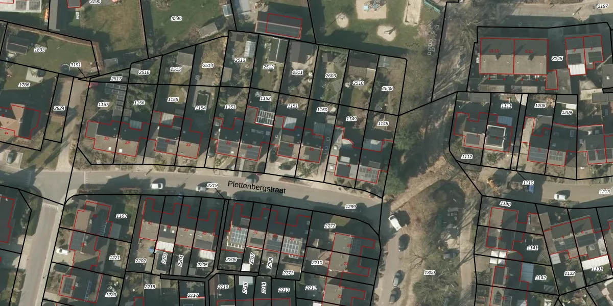 Gebruik de zoekbalk of klik op een perceel voor informatie over de adressen binnen dit perceel.