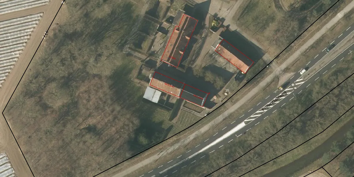 Het perceel waarop Provincialeweg 6-A-5 staat heeft een oppervlakte van 3,3 ha. Dit is een zeer groot perceel. De perceeloppervlakte wordt geregistreerd door het Kadaster. Gedetailleerde informatie over de maten van dit perceel kunt u vinden in het rapport Kadastrale kaart met maatvoering van Provincialeweg 6-A-5.