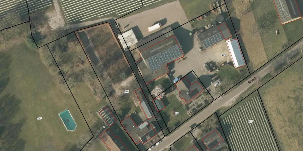 Het perceel waarop Rooth 17 staat heeft een oppervlakte van 2846 m². Dit is een zeer groot perceel. De perceeloppervlakte wordt geregistreerd door het Kadaster. Gedetailleerde informatie over de maten van dit perceel kunt u vinden in het rapport Kadastrale kaart met maatvoering van Rooth 17.