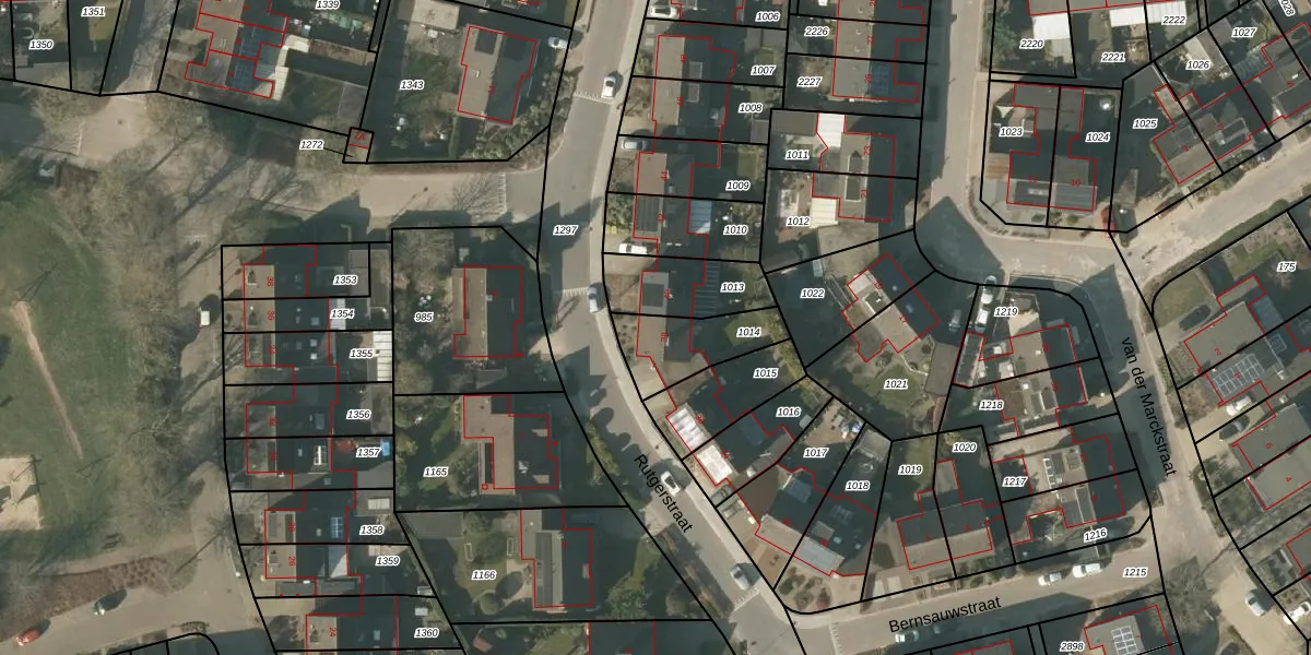 Het perceel waarop Rutgerstraat 38 staat heeft een oppervlakte van 215 m². Dit is een middelgroot perceel. De perceeloppervlakte wordt geregistreerd door het Kadaster. Gedetailleerde informatie over de maten van dit perceel kunt u vinden in het rapport Kadastrale kaart met maatvoering van Rutgerstraat 38.